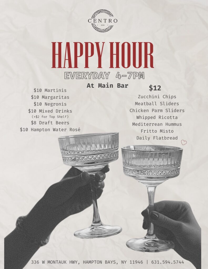 Centro 336 is a farm to fork Italian restaurant located in Hampton Bays, New York. Serving dinner daily, all of our menu items are made in house using many of the East End’s local, in season produce. Our menu centers around family recipes including fresh homemade pasta, individual pizzas from our wood burning oven and dishes with Mediterranean touches, such as baked clams , hummus, and zucchini chips.